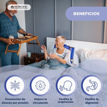 Este incorporador de espalda permite cinco ajustes, desde una posición casi vertical a una casi plana, permite a las personas encamadas realizar actividades cotidianas con mayor seguridad y sin prescindir de la comodidad.