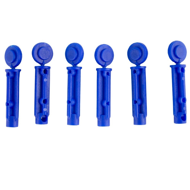 Lancetas para muestreos de sangre capilar para medir los niveles de glucosa en sangre. Se trata de pequeños bisturí que realizan un punzado sobre el dedo para tomar una pequeñísima muestra de sangre para que el medidor de glucosa pueda determinar resultados.