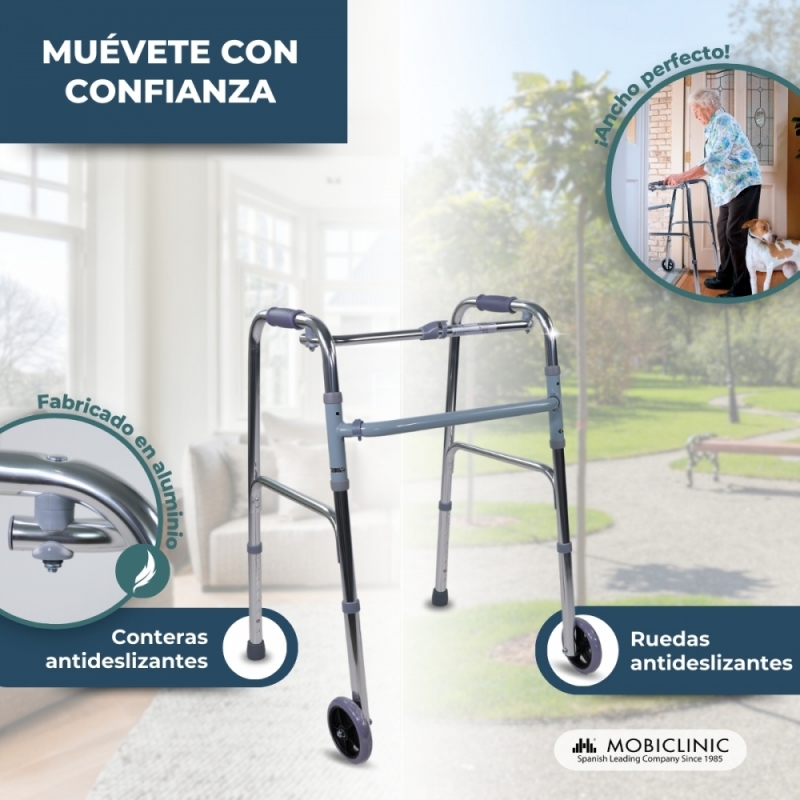 LIGERO: este andador de aluminio cuenta con un sencillo acabado en color plata, y ofrece la combinación perfecta entre resistencia y ligereza para facilitar el desplazamiento de cualquier persona.