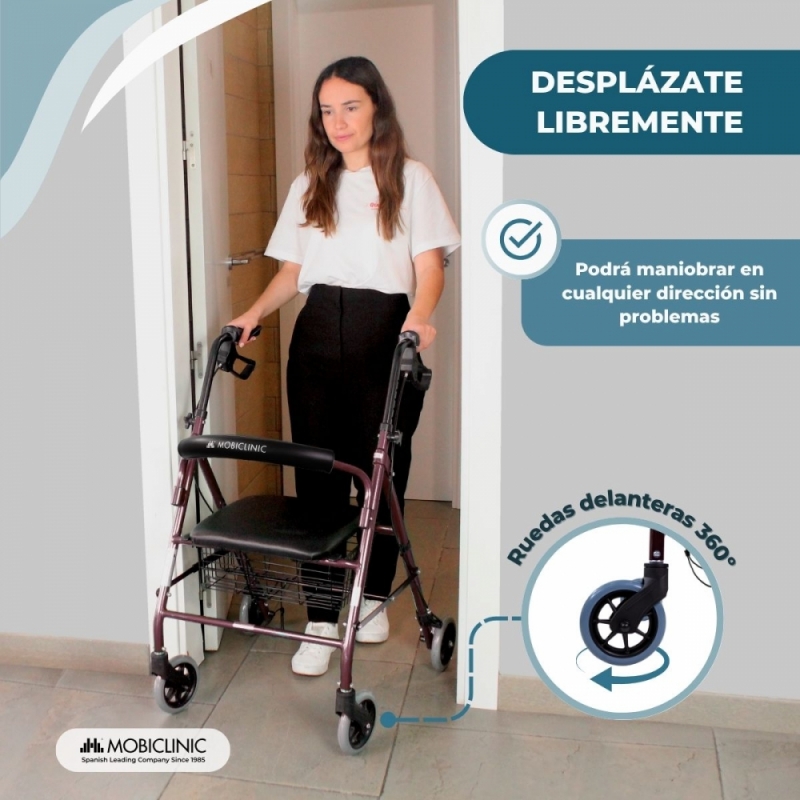 Es un andador para adultos con un diseño innovador y ligero, que ofrece una excelente movilidad y estabilidad durante la marcha. Fabricado en aluminio aporta una gran resistencia y agilidad en los movimientos. Sus cuatro ruedas macizas están diseñadas para superar cómodamente los pequeños obstáculos del firme tanto en interiores como exteriores, sin ningún riesgo de pinchazo.