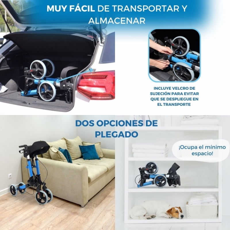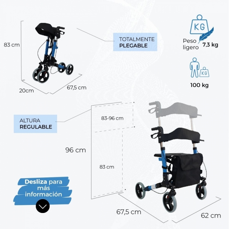 REGULABLE Y PLEGABLE: sus mangos son regulables en altura para adaptarse al usuario entre los 83 a 95 cm. Además, gracias al sistema de plegado podrás transportar este andador ortopédico de forma fácil.
