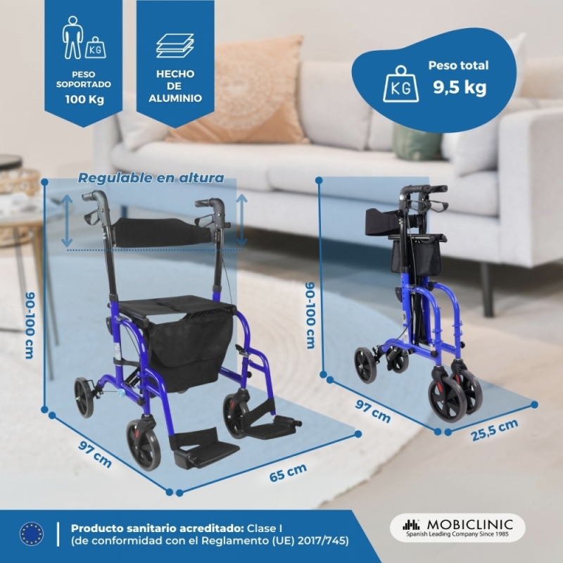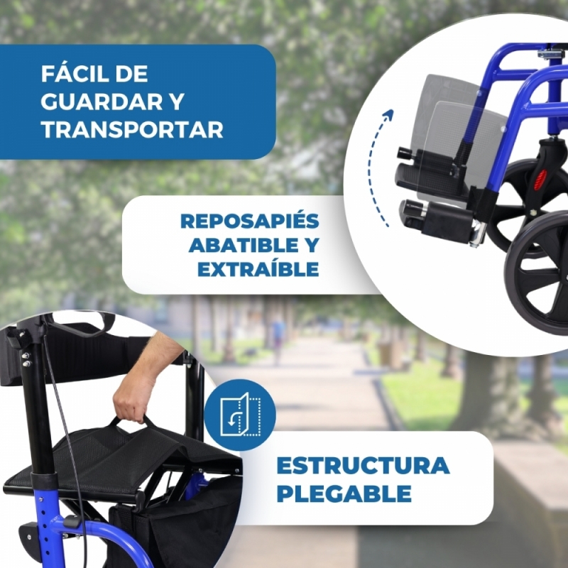 Por último, este andador para adultos tiene la capacidad de plegarse, y gracias a su material ligero, lo hace fácil de transportar.