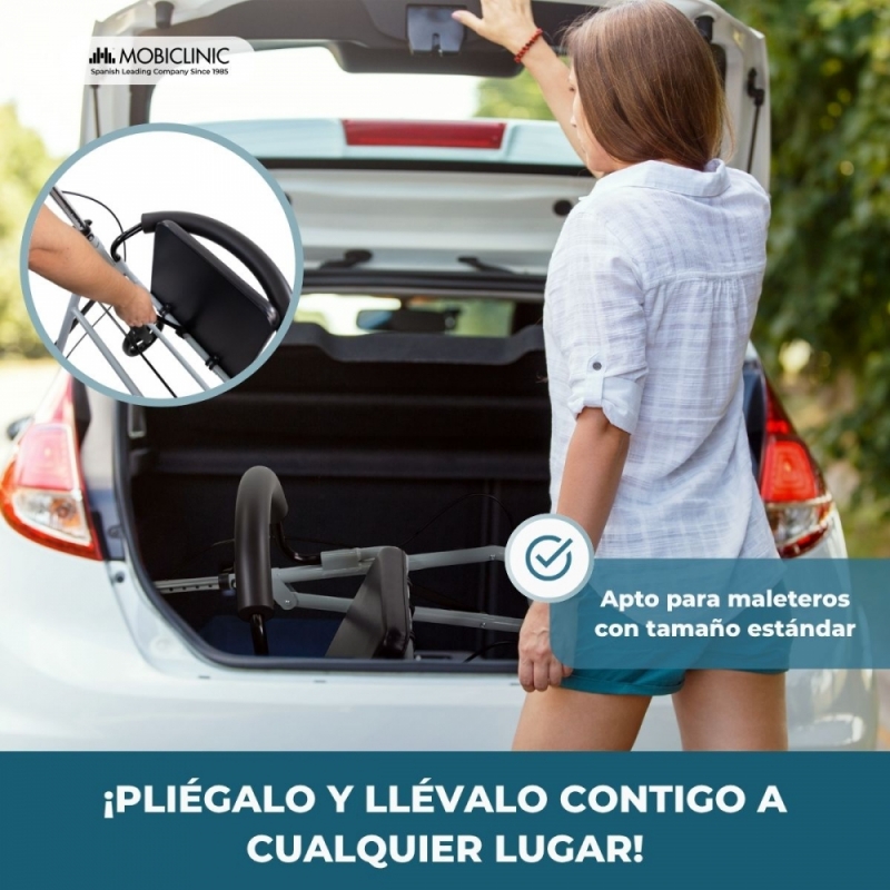 PUERTAS Y MALETERO: Este andador tiene un ancho total de 63 cm, por lo que puede pasar por puertas de ancho estándar de 72.5 cm. Además, gracias a su plegado se puede transportar en el maletero de un vehículo tipo Volkswagen Polo. Asegúrese de las medidas de sus puertas y vehículo para comprobar que le viene bien.