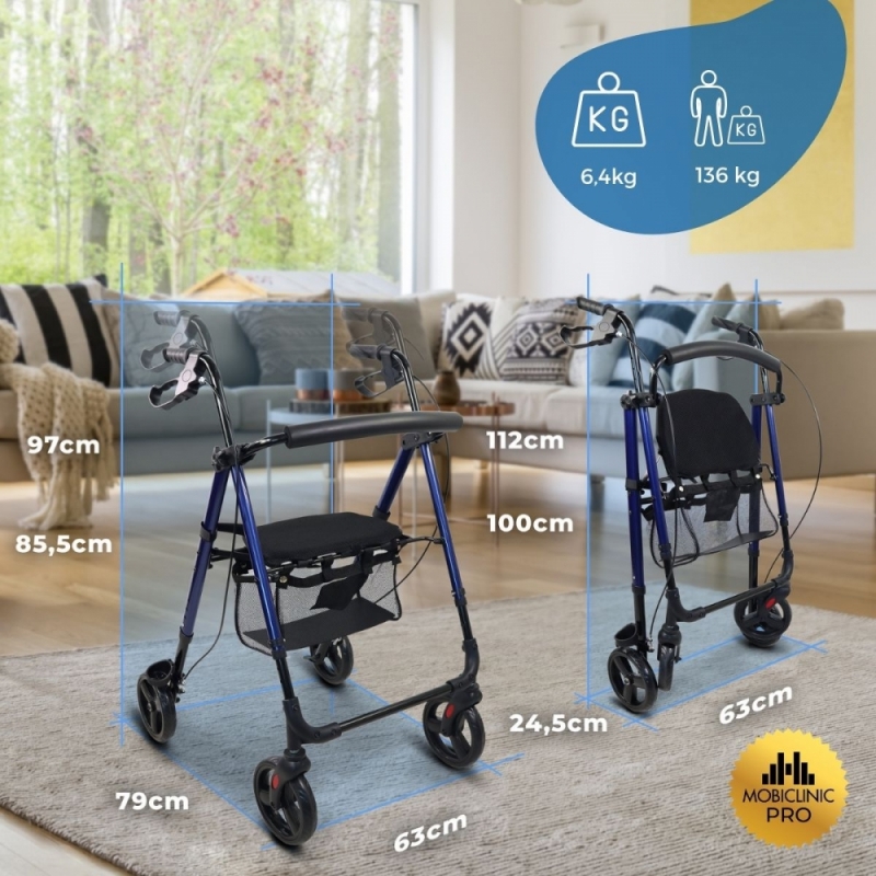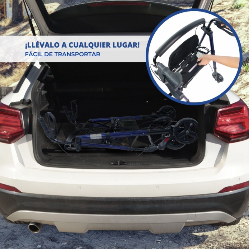 PLEGABLE: al tratarse de un andador plegable el usuario puede doblarlo para guardarlo en casa o para llevarlo en el maletero del coche, permitiendo así poder transportarlo y guardarlo en cualquier lugar con facilidad.