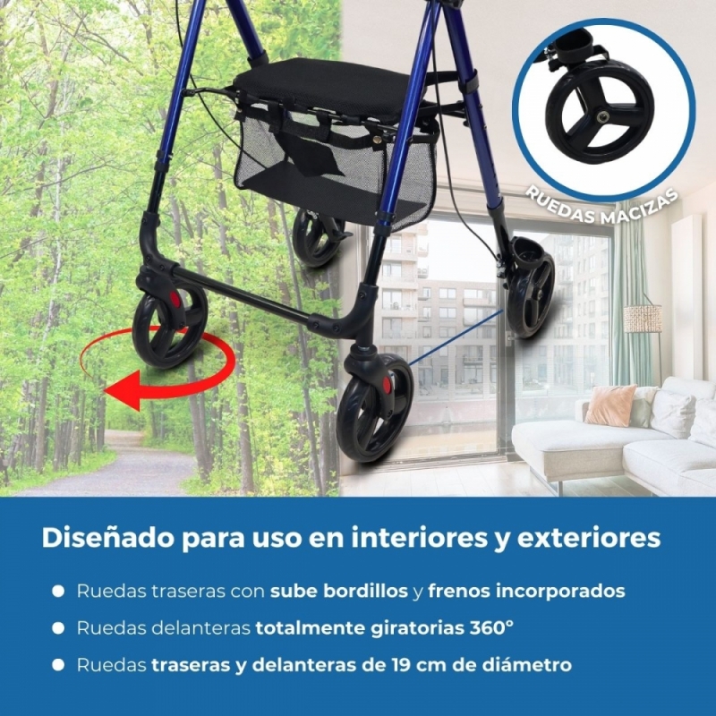PROPORCIONA AUTONOMÍA: este andador para mayores y discapacitados les permitirá tener mayor autonomía con toda seguridad gracias a sus frenos por maneta y su amplia cesta, además de sus ruedas, que permiten un giro total de hasta 360º.