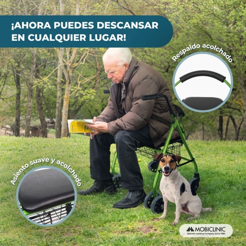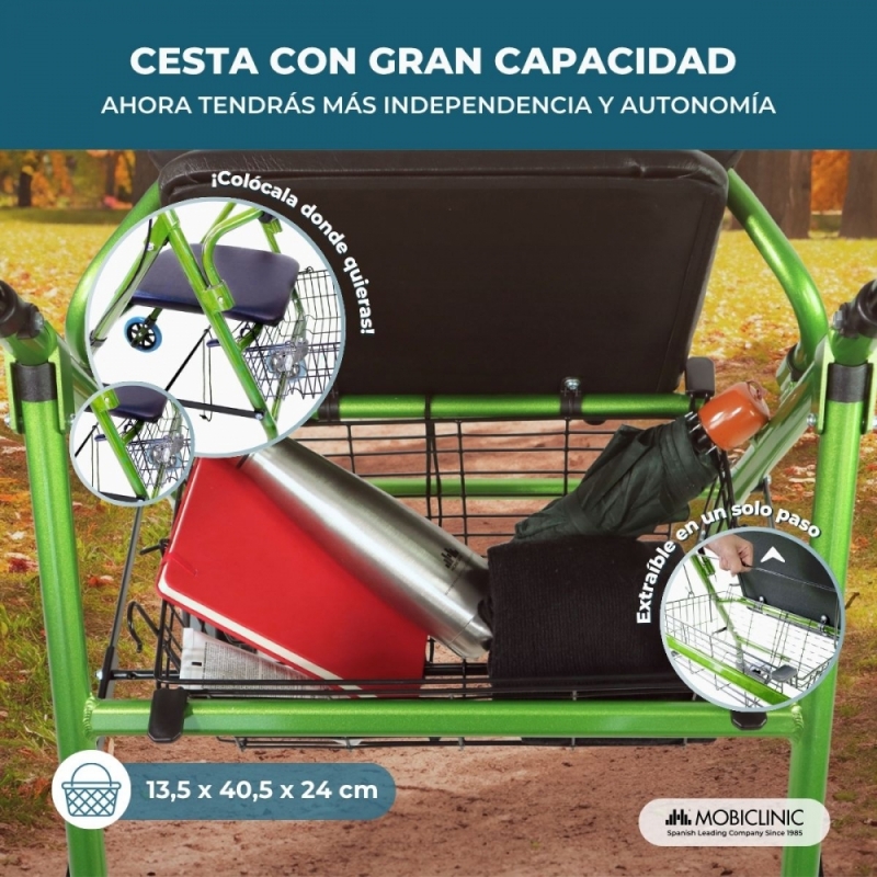 4 PRODUCTOS EN 1: no es solo un andador para ancianos, sus prestaciones le hacen servir de apoyo como bastón, tiene un cómodo asiento con respaldo y dispone de una práctica cesta de compras.