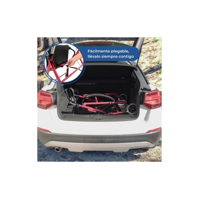 PUERTAS Y MALETERO: Este andador tiene un ancho total de 61 cm, por lo que puede pasar por puertas de ancho estándar de 62.5 cm. Además, como este andador plegado mide sólo 25 cm, se puede transportar en el maletero de un vehículo tipo Volkswagen Polo. Asegúrese de las medidas de sus puertas y vehículo para comprobar que le viene bien.