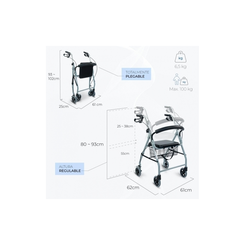 • Su resistencia y durabilidad. Gracias a su estructura resistente podrá disfrutar de este andador para personas mayores sin preocuparse por nada.