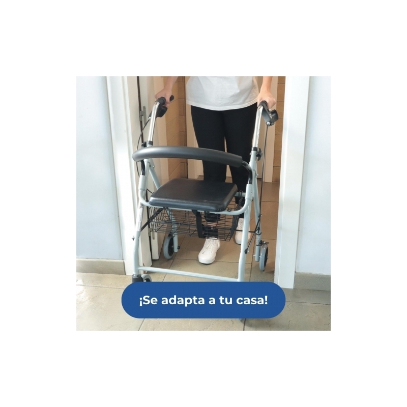 CÓMODO: gracias a la cesta de este andador plegable, siempre podrá llevar con usted sus pertenencias. Puede colocarla debajo del asiento o en la parte delantera. Igualmente, el cojín está realizado en un material viscoelástico y lavable, lo que permite un asiento más seguro y capaz de prevenir la aparición de escaras.