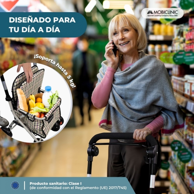 Carro de la compra andador | 4 ruedas | Hasta 120Kg | Plegable | Con bolsa | Sistema de frenado | Cuadros | Coliseo | Mobiclinic