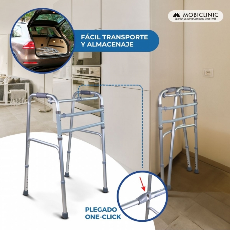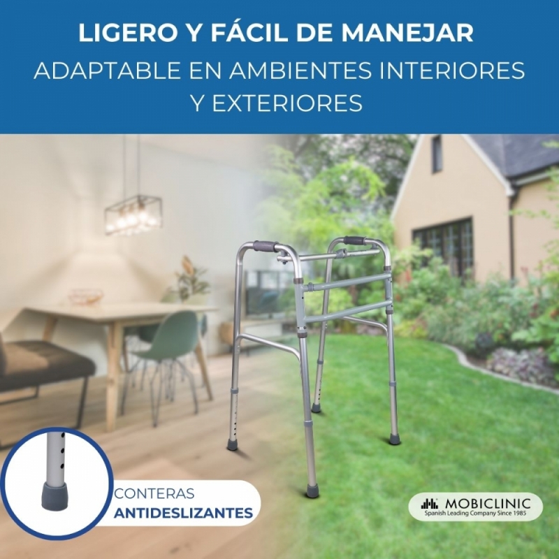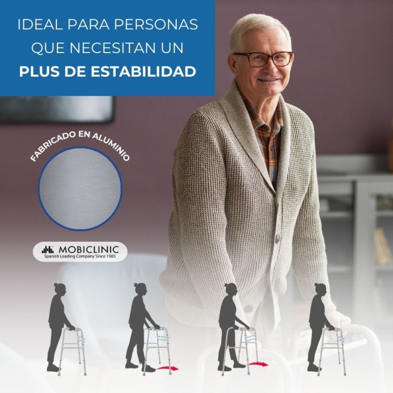 El andador para adulto Mezquita es el mejor andador sin ruedas para ancianos que pueda encontrar. Con él, las personas con movilidad reducida pueden andar con firmeza y confianza. Su estructura ligera de aluminio permite que este andador ortopédico pueda manejarse de una forma ágil y fácil, ejerciendo el mínimo esfuerzo posible. El movimiento se vuelve mucho más natural al usar este andador sin ruedas porque acompaña al usuario progresivamente sin sobresaltos ni deslizamientos.