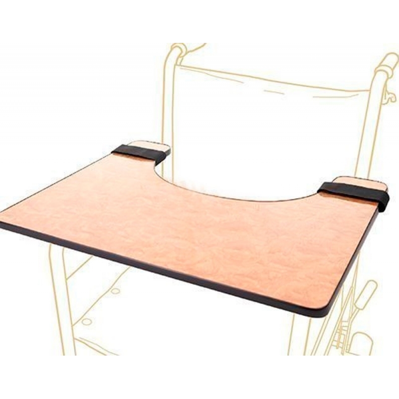 Para la realización de algunas actividades tales como la escritura, trabajar con el ordenador o comer, es fundamental contar con una superficie en la que realizarla para asegurar una mayor comodidad. Por ello, la bandeja de trabajo es esencial. Esta bandeja de trabajo está hecha de un conglomerado fuerte de densidad media de 15 mm de grosor. Se adapta con facilidad a todo tipo de silla de ruedas gracias a unas correas.