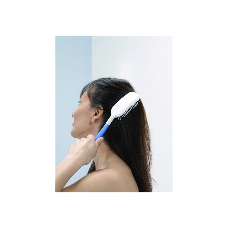 Cepillo curvo para espalda | Blanco y azul | Plástico