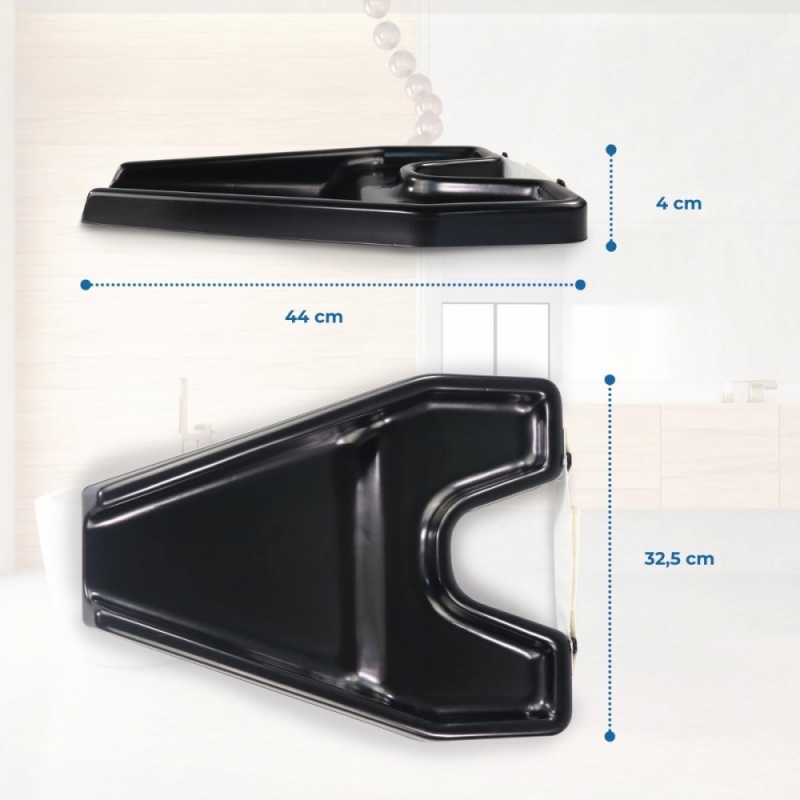 Con el lavacabezas portátil no necesitarás llevar hasta la peluquería a tus personas en silla de ruedas, pues es un accesorio ideal para usar en casa. Su diseño en forma de bandeja de plástico con un perfil especial y bordes elevados solo requiere colocarlo directamente a la altura del lavabo. Este accesorio de baño permite el acceso con la silla de ruedas y se sujeta al cuello fácilmente con una tira de velcro.