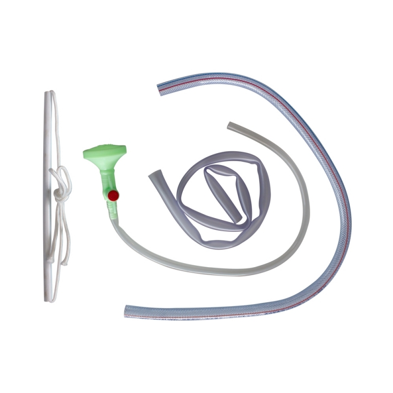 Incluye tubo de drenaje, bomba manual, bolsa de agua con tubo y alcachofa.