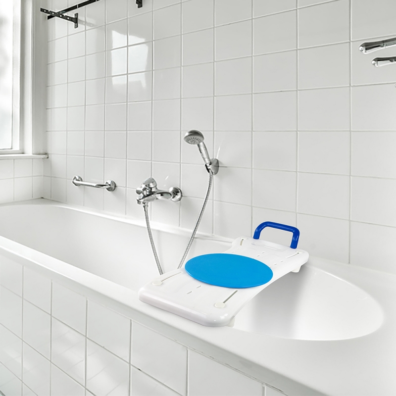 Esta tabla de bañera con asiento giratorio permite el acceso lateral a la bañera de una manera fácil y cómoda. La tabla de bañera proporciona seguridad en la sedestación en la bañera y otorga mayor autonomía durante la ejecución del baño. Además, la bandeja incorpora un asiento giratorio para facilitar cualquier maniobra.