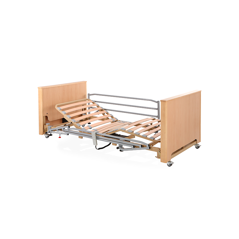 Este lecho también es versátil, ya que permite bloquear total o parcialmente los movimientos y cuenta con un accionamiento eléctrico con 3 motores y una pila para vuelta a 0 en caso de corte de corriente. Las 4 ruedas con freno independiente y la posibilidad de utilizar una grúa lo hacen aún más funcional.