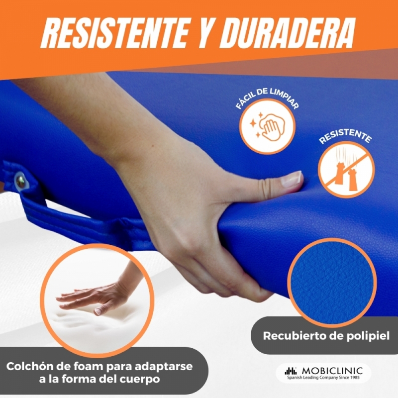 CÓMODA: esta camilla de masaje cuenta con un tapizado en polipiel muy elegante y agradable al tacto con la piel.
