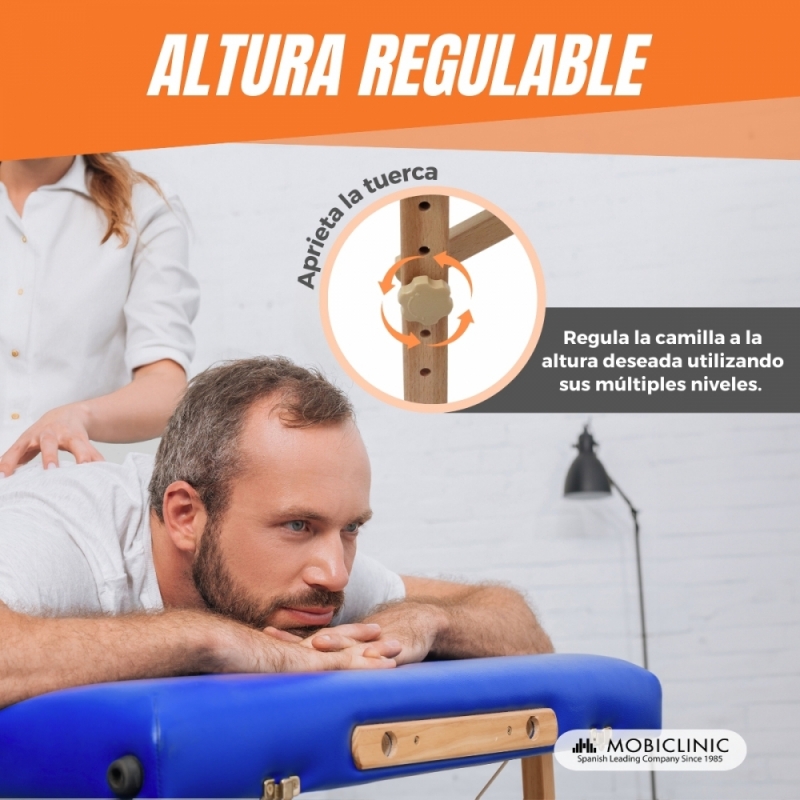 REGULABLE: dispone de varios niveles para regular la altura de la camilla portátil siendo muy fácil su colocación.