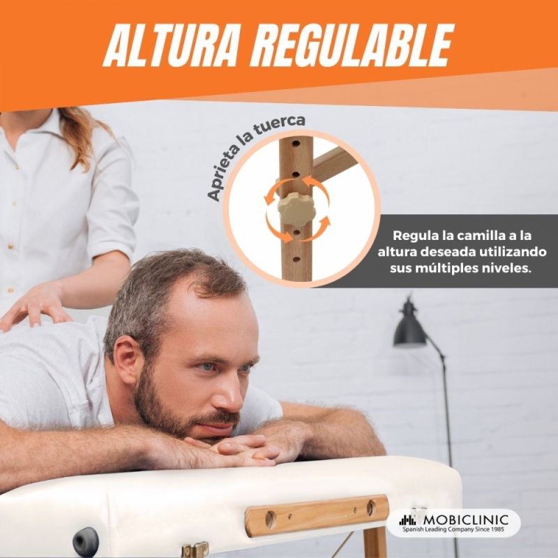 REGULABLE: dispone de varios niveles para regular la altura de la camilla portátil siendo muy fácil su colocación.