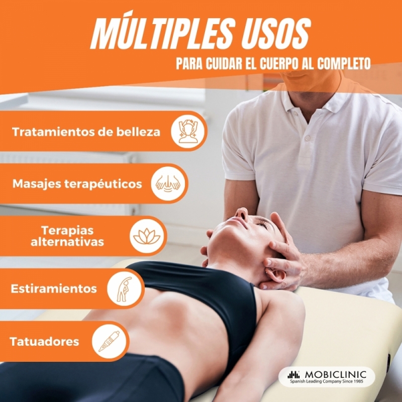 CÓMODA: esta camilla de masaje cuenta con un tapizado en polipiel muy elegante y agradable al tacto con la piel.