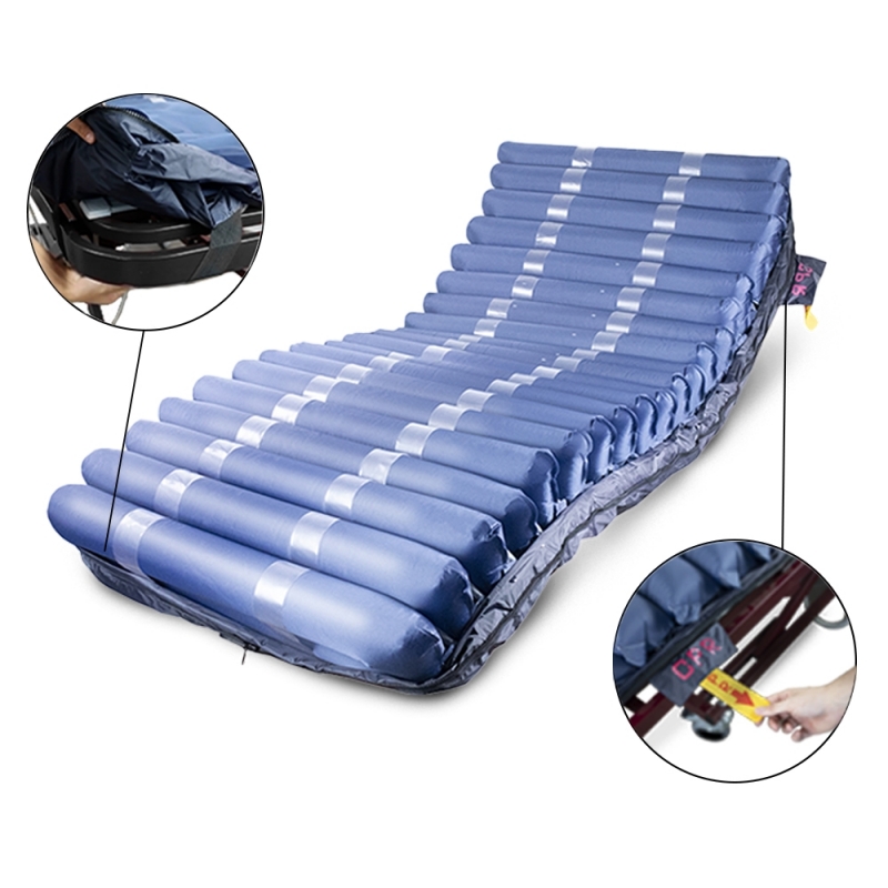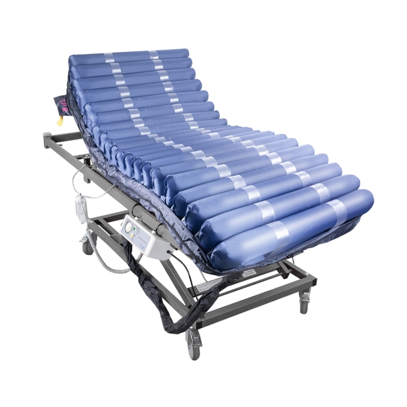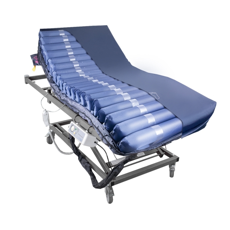 Este colchón de celdas de aire se trata de uno de los más completos y eficaces del mercado, con un efectivo sistema de alternancia entre ciclos terapéuticos en movimiento y estáticos. El ajuste de presión en este colchón de aire es excelente, pues cuenta con 20 celdas individuales que se inflan y se desinflan alternativamente en ciclos, proporcionando así a los pacientes un alivio de presión adecuado.