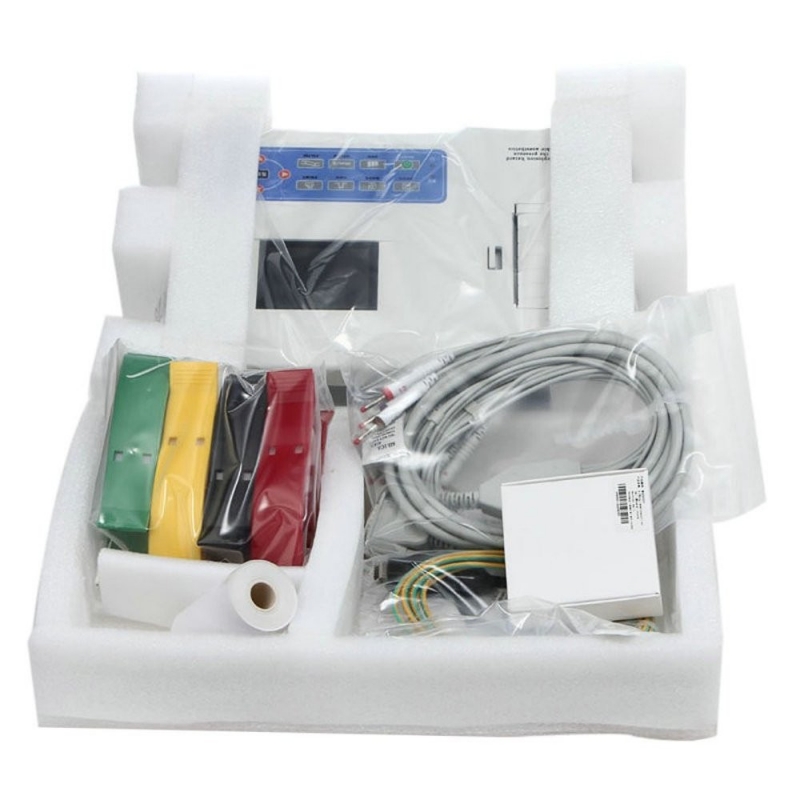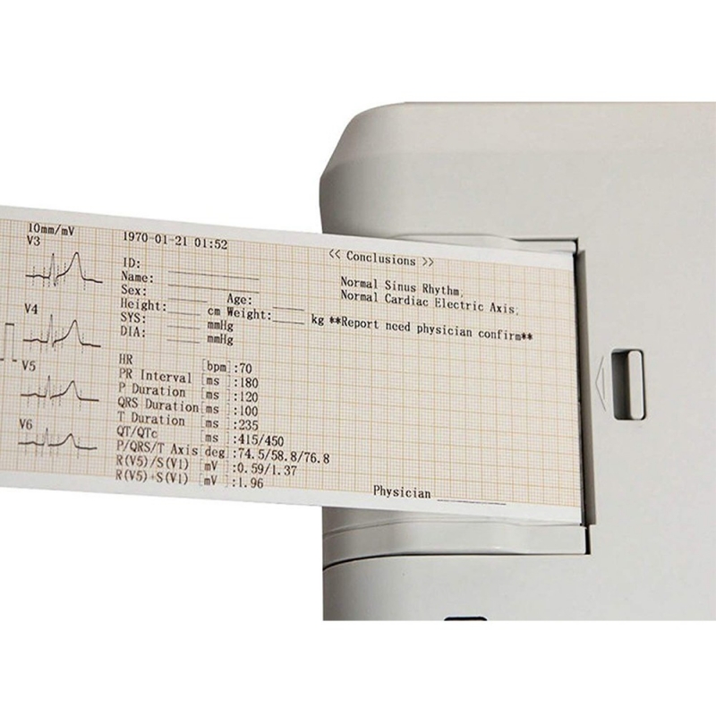 Este electrocardiógrafo portátil ECG300G, de 3 canales con análisis simultáneo de 12 derivaciones y sistema de impresión térmica de formas de onda ECG, es ideal para las situaciones de emergencia.