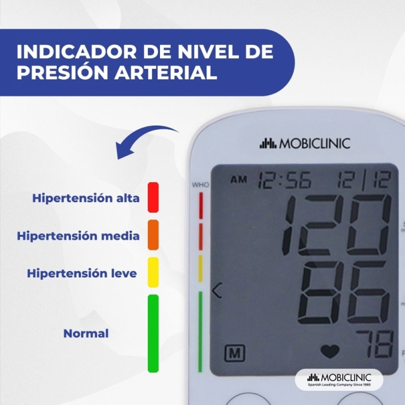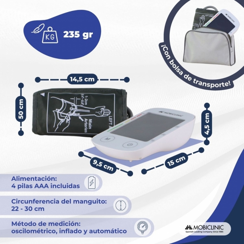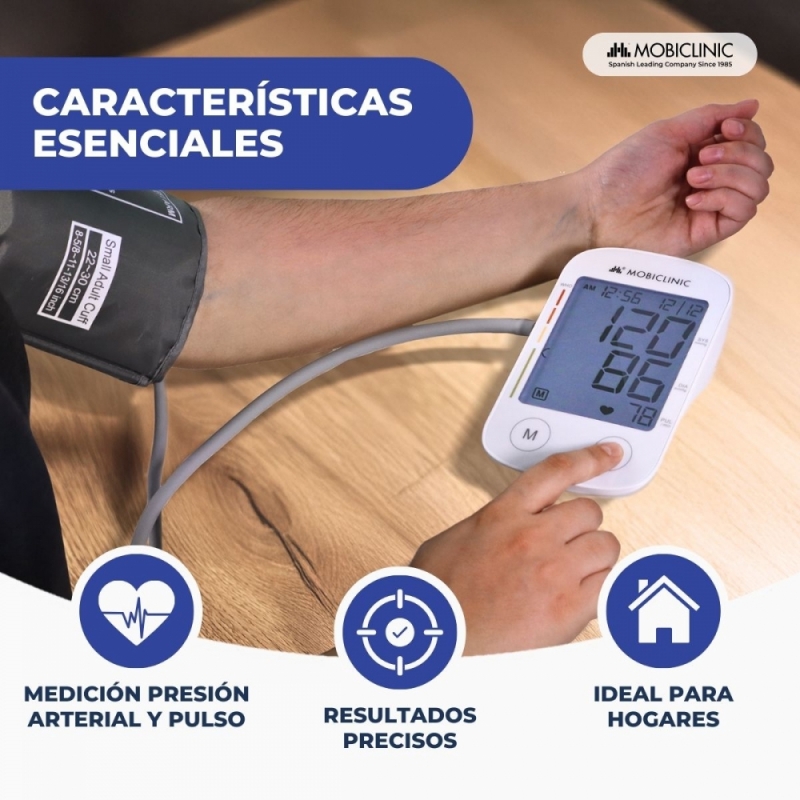 El tensiómetro automático con memoria de Mobiclinic mide la presión arterial y el pulso de forma rápida y sencilla.