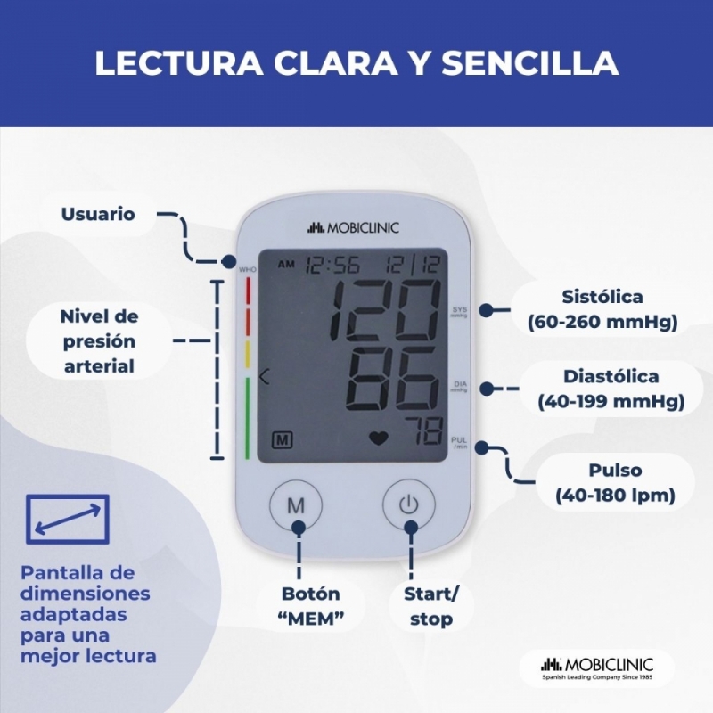 FÁCIL DE USAR: facilita el uso de este tensiómetro gracias a su fácil lectura