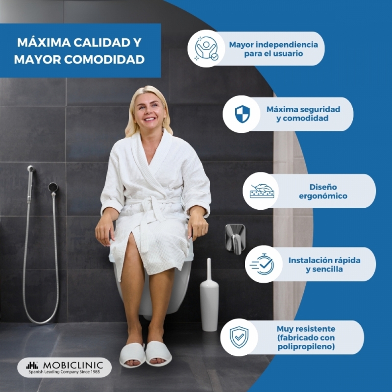 Este elevador inodoro es ideal para las personas con dificultad para incorporarse o levantarse del inodoro, ya que les aporta la seguridad, tranquilidad y autonomía que necesitan para ir al baño.