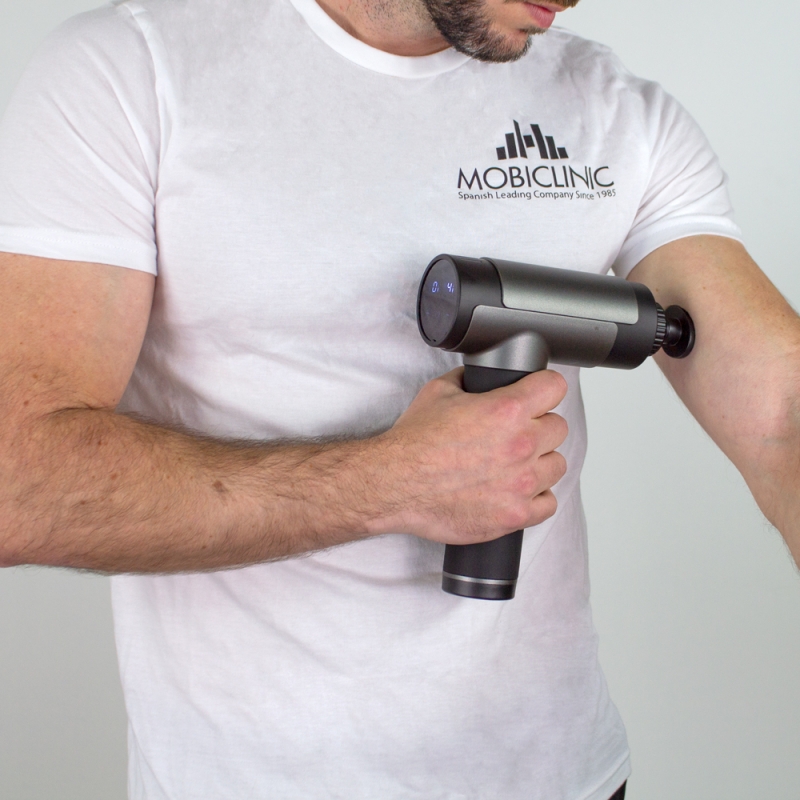 Con la pistola de masaje muscular, podrá realizar masajes de percusión. Este tipo de masaje consiste en la realización de movimientos constantes que aportan numerosos beneficios como la reducción del dolor, el incremento del flujo sanguíneo o la reducción de espasmos musculares, entre otros.
