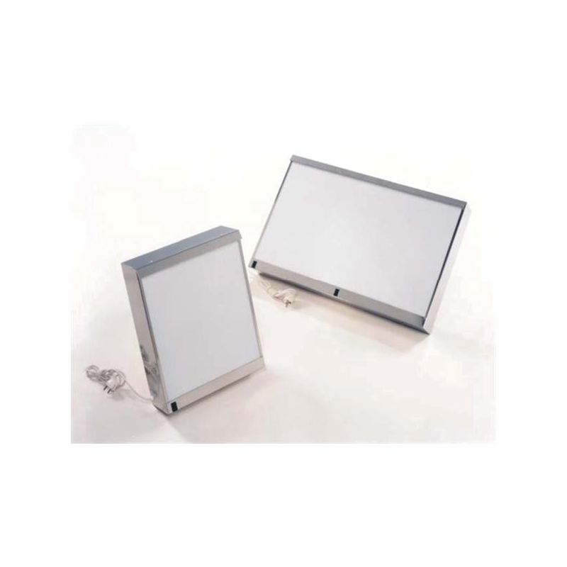 Negatoscopios construidos en acero inoxidable o acero esmaltado con interruptor frontal por pantalla. Iluminación através de fluorescencia. El enganche placa es de acero inoxidable. La pantalla de metacrilato es decolor blanco. Componentes eléctricos CE. Toma de tierra. Disponibles diiferentes versiones de pantallas: horizontales, verticales y rodantes. Opción: regulador.