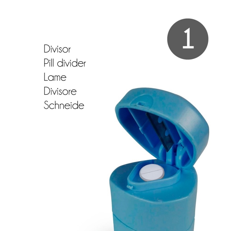 Es muy útil ya que este pastillero 3 en 1 en uno de los extremos, cuenta con un pequeño depósito en el que poder guardar las pastillas. En el centro se puede desenroscar para que sirva como triturador, por lo que consigue fácilmente reducir las pastillas a polvo. En el otro extremo trae una pequeña cuchilla que puede cortar la pastilla sin ningún tipo de dificultad ni esfuerzo.