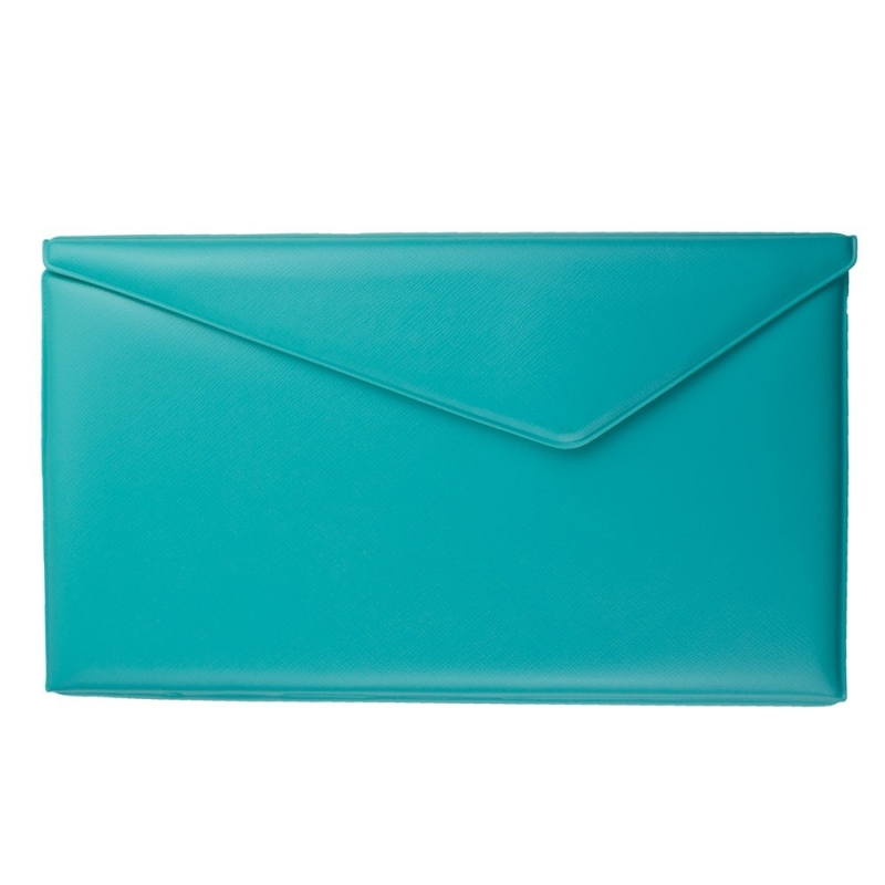 Su elegante diseño en cartera de color verde con cierre imantado lo hace muy práctico y discreto.