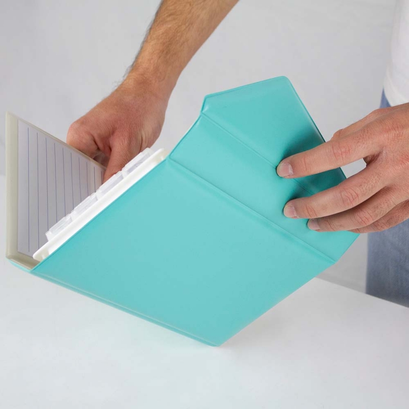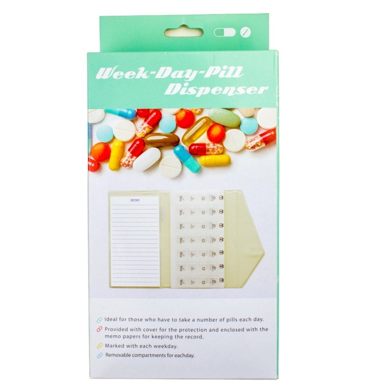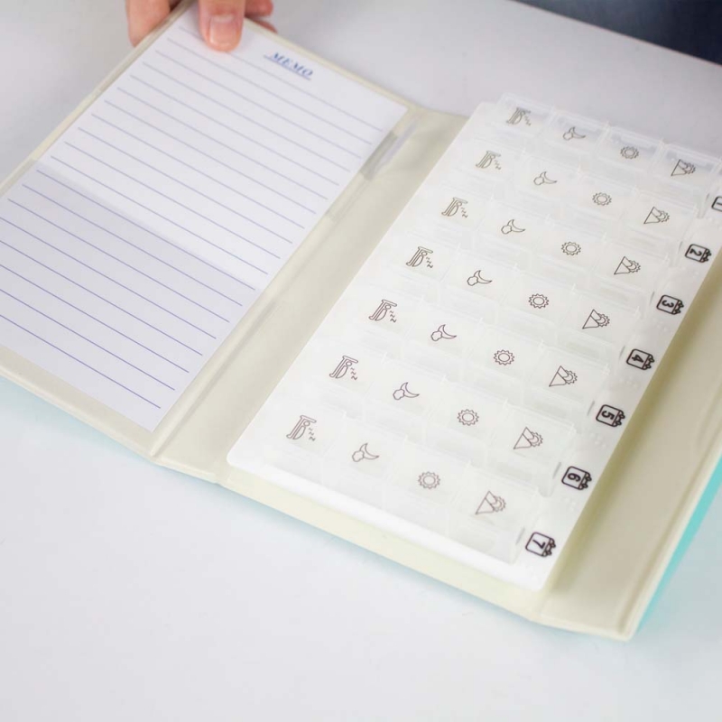 Este organizador de pastillas dispone de un bloc de notas de 8 páginas y espacio para bolígrafo y tarjetas, por lo que se puede guardar de forma cómoda y segura la tarjeta sanitaria. El bloc de notas se puede utilizar para llevar un control de las pastillas de cada toma.