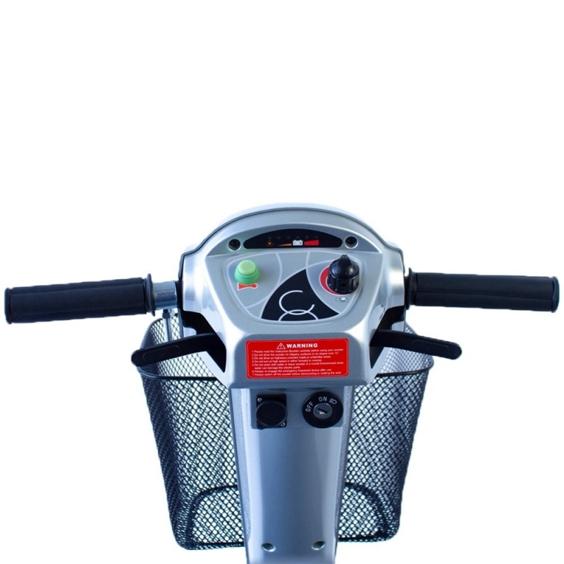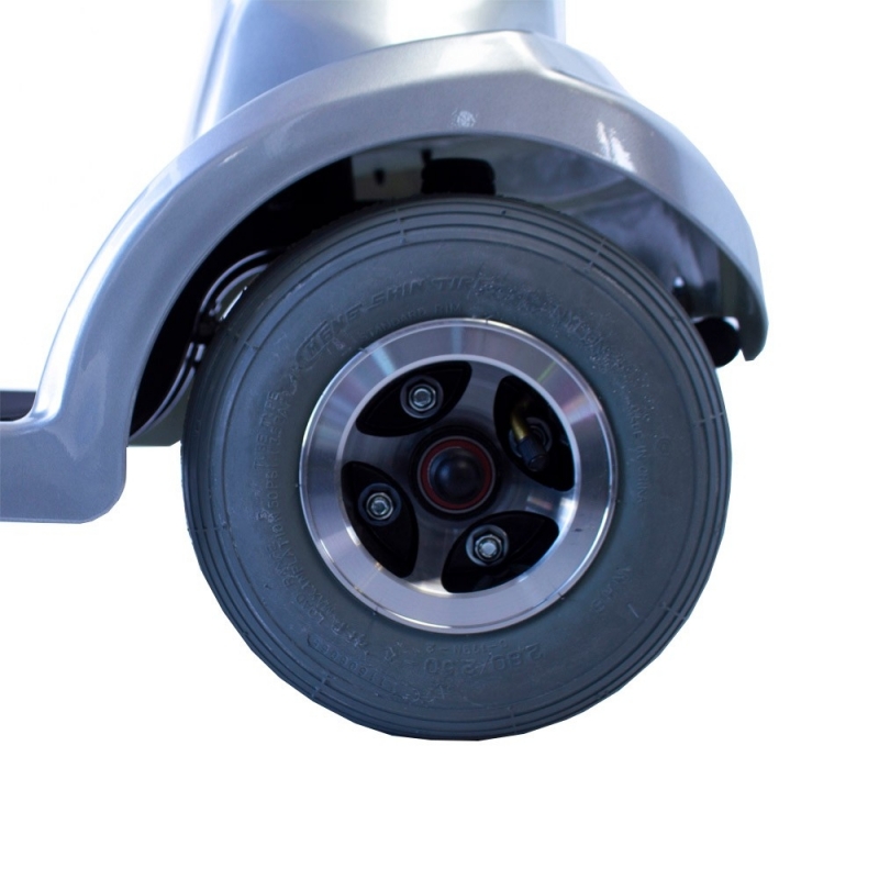 Es un scooter movilidad reducida muy seguro, incluye ruedas traseras antivuelco, para que, en curvas e inclinaciones, no exista riesgo de caída. Tiene el chasis reforzado para reducir la flexión y el rodaje de las llantas. También, tiene una luz delantera que mejora la visibilidad del usuario y de los demás.