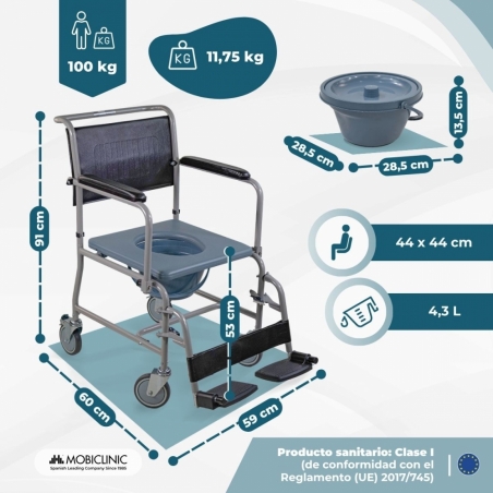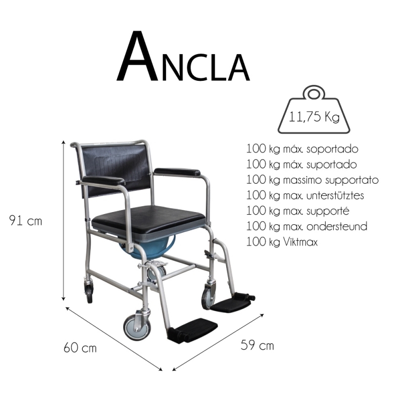 La silla con WC Ancla es una ayuda para el baño ideal para personas con movilidad reducida o con dificultades para asearse o realizar sus necesidades. Esta silla de baño para discapacitados es realmente manejable siendo muy cómoda para desplazar por el hogar.