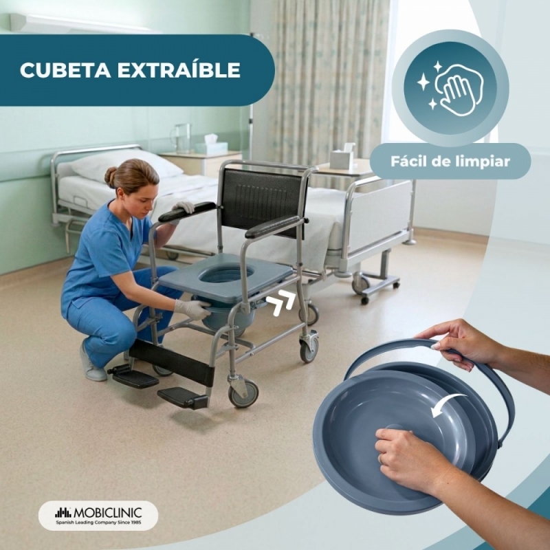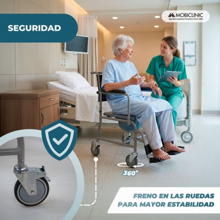SEGURA: puedes evitar accidentes con esta silla de ruedas con inodoro gracias a los frenos colocados en las ruedas traseras para mantener la silla firme al suelo