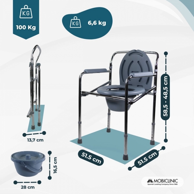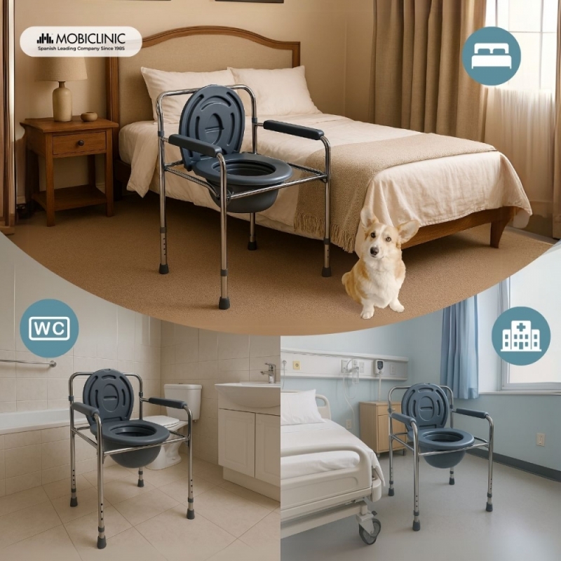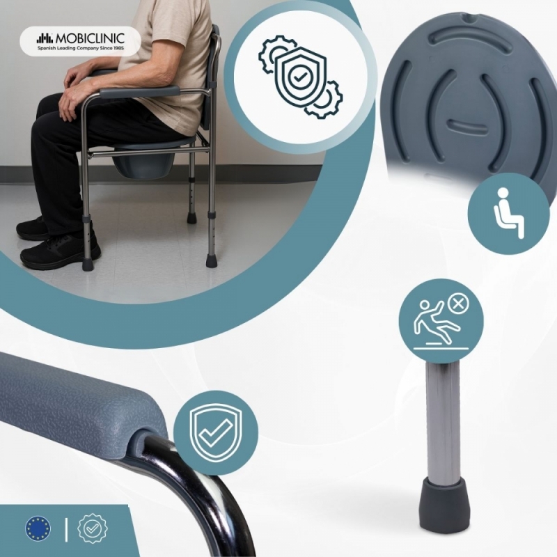 AJUSTABLE: la silla wc cuenta con la posibilidad de ser regulada en altura.