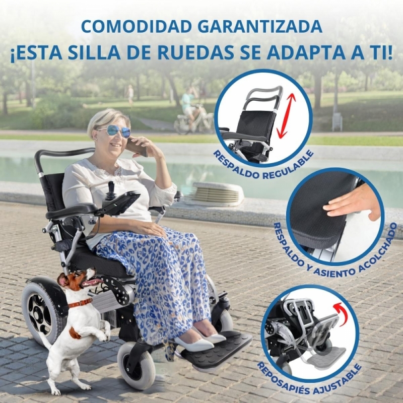 ACCESIBLE PARA DISTINTOS USUARIOS: el peso de esta silla de ruedas eléctrica sin las baterías es de 24.8 kg y con baterías su peso total es de 36 kg . Además, este modelo es capaz de soportar un peso máximo de hasta 120 kg.