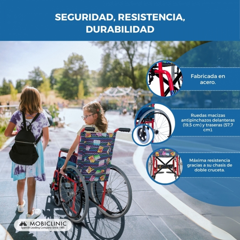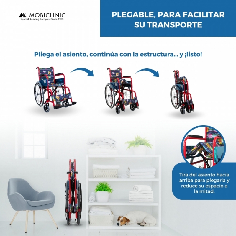 Este es el medio de transporte ideal para aquellas personas que tienen problemas para caminar o desplazarse, así como para personas que acaban de pasar por una operación. Por último, su divertido estampado la distingue del resto de sillas.