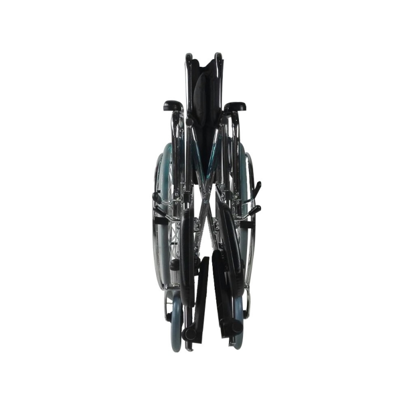 La silla de ruedas plegable también dispone de un juego de ruedas macizas. Esta característica suprime el riesgo de sufrir un pinchazo inoportuno y la convierten en producto ideal para el uso en interior.