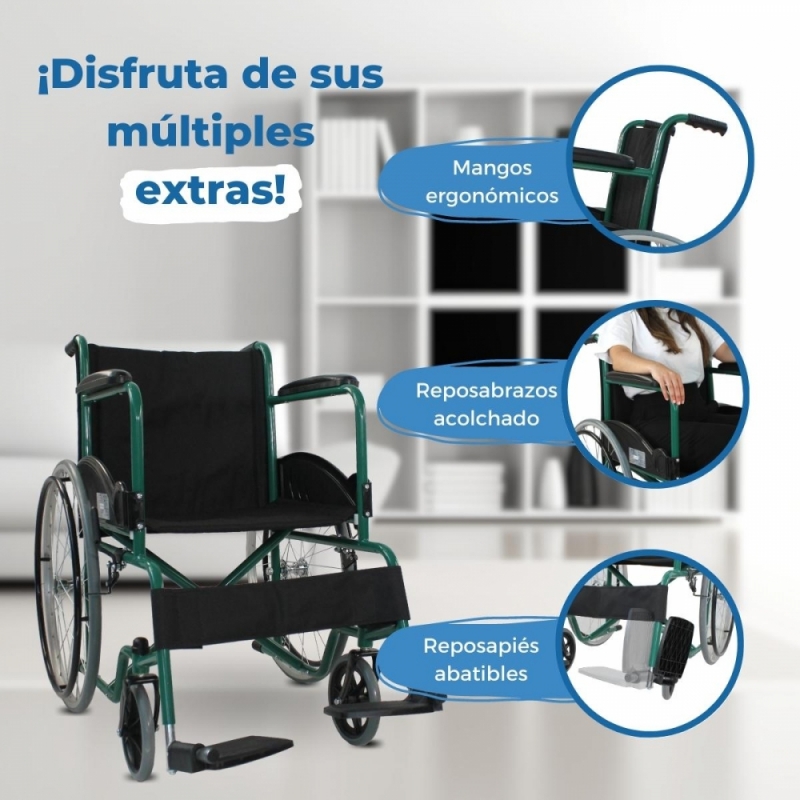 CÓMODA: con ruedas grandes autopropulsables. Reposapiés y reposabrazos firmes y cómodos. Además tiene frenos en las ruedas traseras, la hacen una silla para ancianos segura.