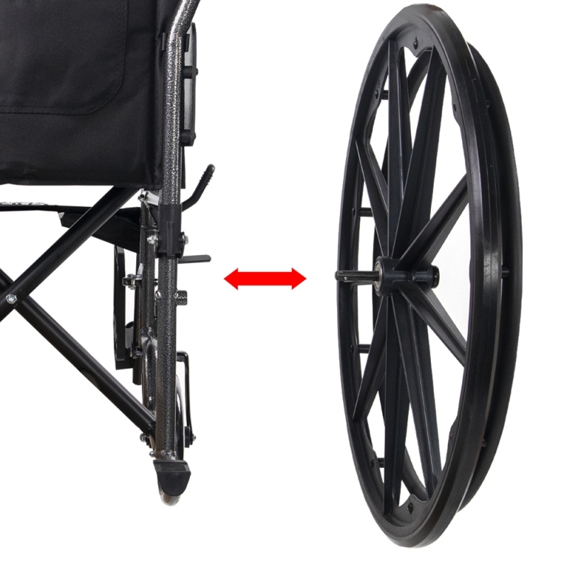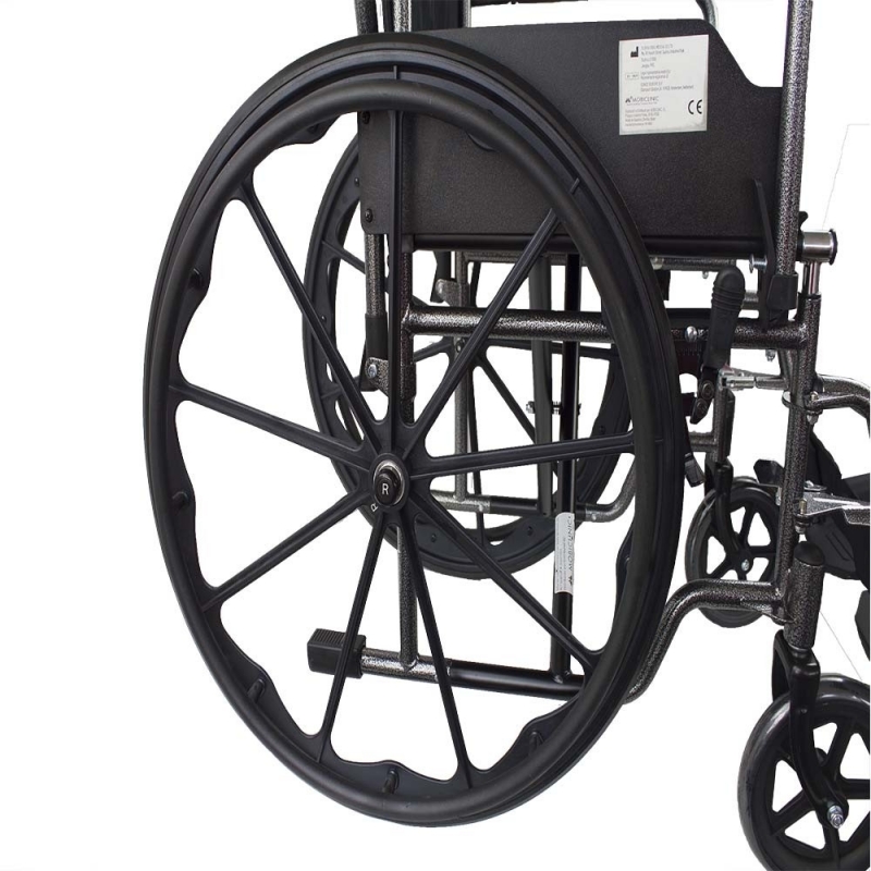 RUEDAS EXTRACCIÓN RÁPIDA: esta silla de ruedas es muy fácil de almacenar ya que sus ruedas traseras pueden extraerse sin necesidad de usar herramientas, tan solo pulsando un botón mediante el sistema Quick Release en caso de necesitar transportar la silla.