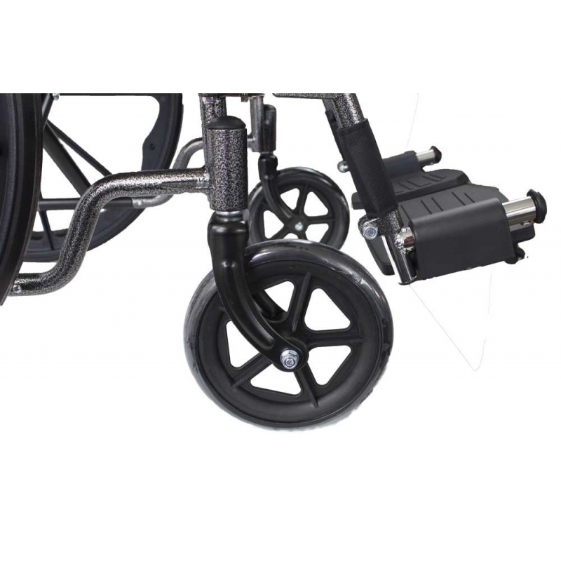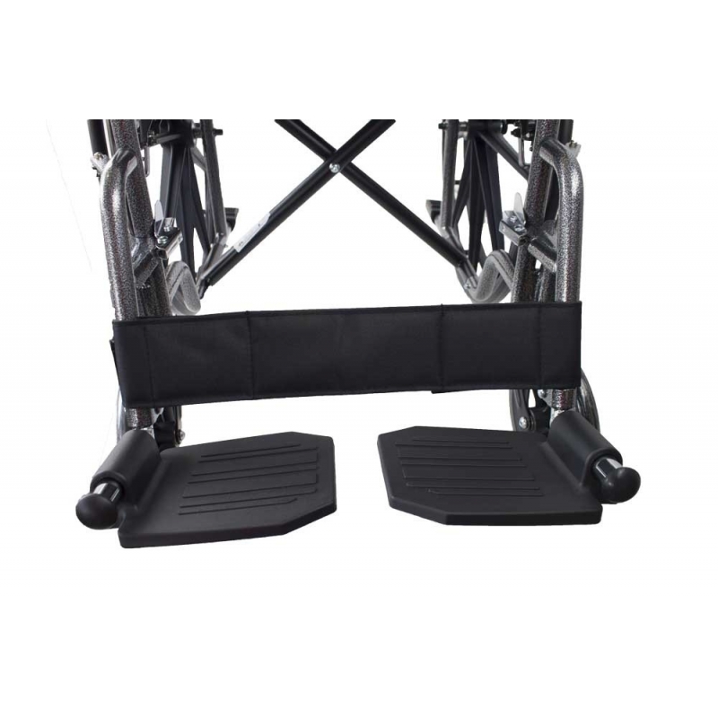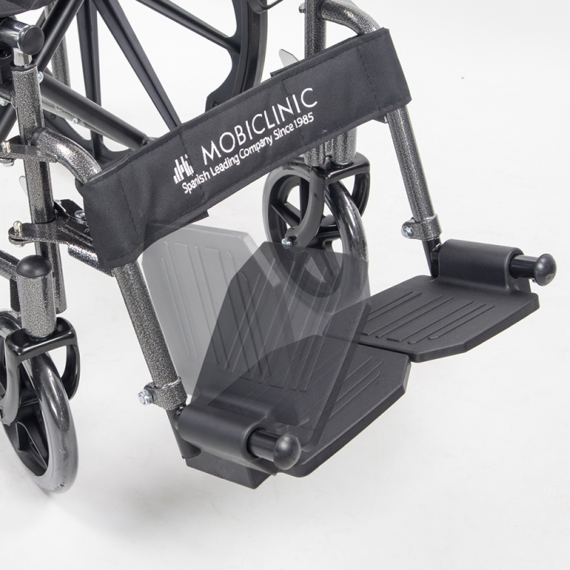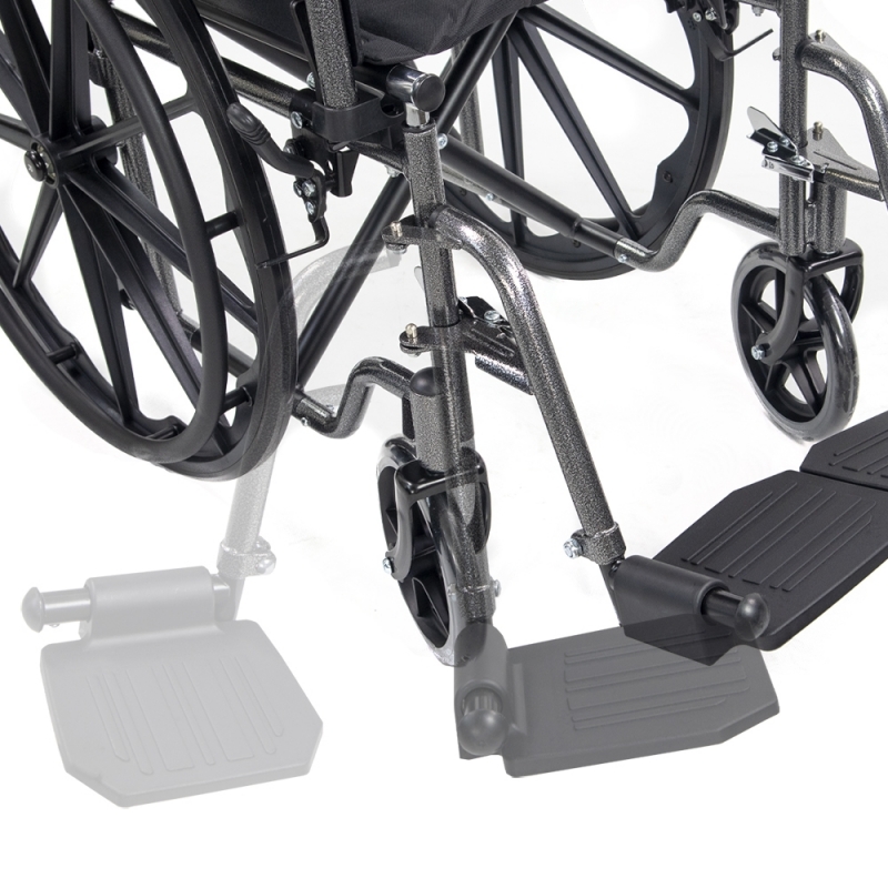 FÁCIL DE USAR: los reposapiés de esta silla ruedas se extraen fácilmente. Son regulables en altura para adaptarse a la estatura del usuario.