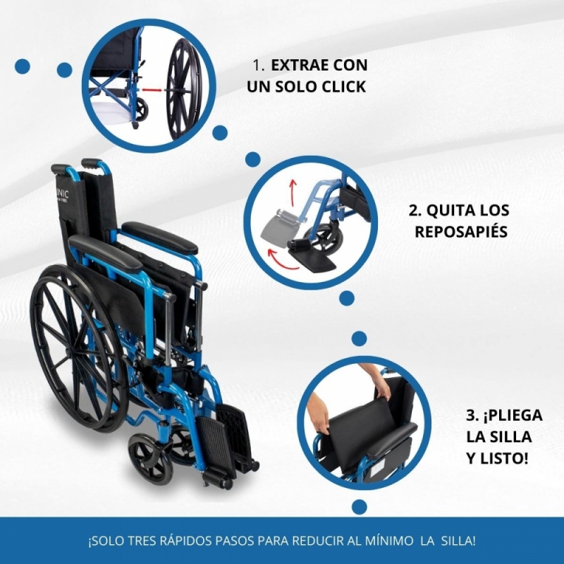 PLEGABLE: Silla de ruedas plegable fácil de guardar. Se pliega para facilitar el transporte