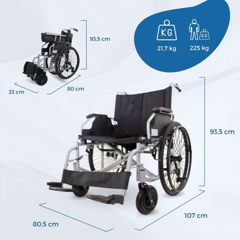 TAMAÑO MAXI: Un ancho de asiento especial de hasta 60cm y un peso de carga máximo de 225kg, para adaptarse y asegurar la comodidad del usuario. Debido a su gran tamaño, asegúrese de medir el ancho de sus puertas y accesos para garantizar el paso de la silla sin inconvenientes.
