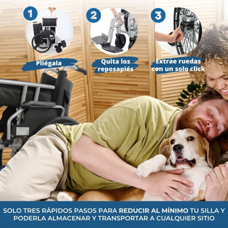 Además, esta cómoda silla es plegable e incluye reposabrazos y reposapiés abatibles y extraíbles para aumentar la comodidad y el trasporte. Esto facilita la entrada y salida por el lateral y el transporte de la silla de forma cómoda.