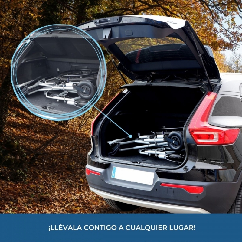 Puede utilizarse tanto en interior como en exterior. El usuario puede sentarse en ella para que lo trasladen utilizando las empuñaduras o puede desplazarse por sí mismo utilizando los aros de las ruedas traseras.