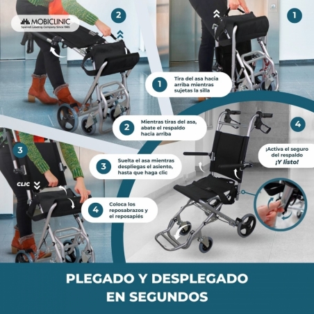 PLEGABLE: esta silla de ruedas plegable fabricada en aluminio para hacer un desplazamiento ligero sin perder en ningún momento la estabilidad.